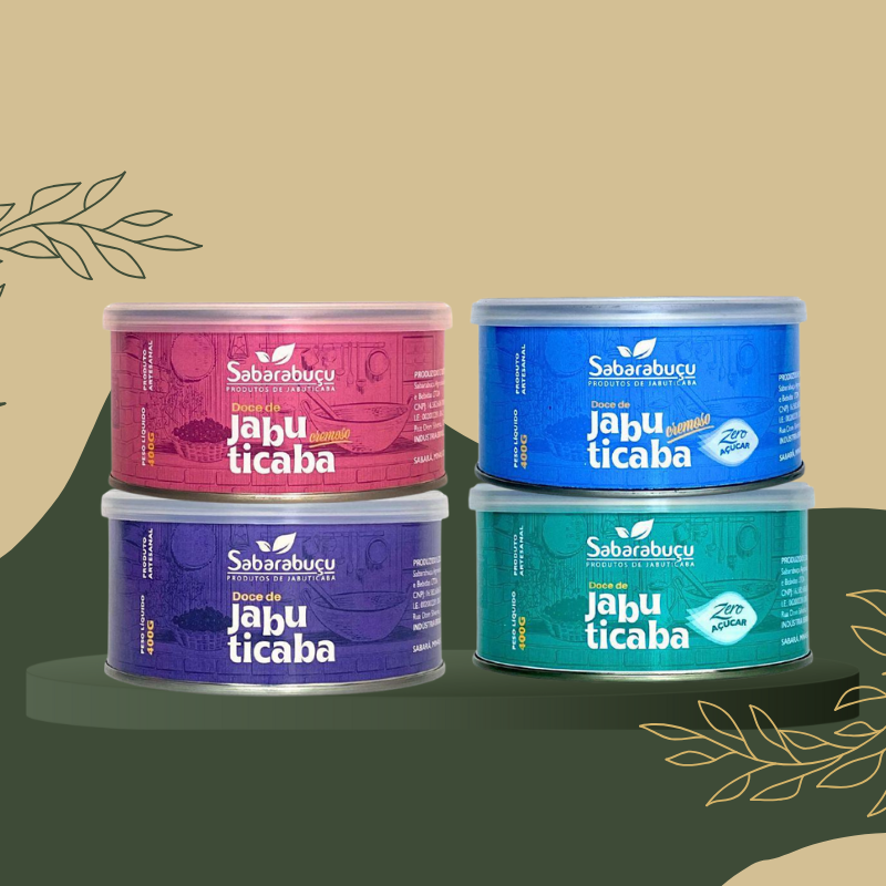 Reunimos aqui quatro versões dos nossos doces mais amados na Sabarabuçu: o Doce Cremoso com Açúcar, pra comer de colher; o Doce de Corte com Açúcar, com aquela textura firme que lembra infância; e suas versões zero açúcar, ideais pra quem quer um docinho mais leve, sem abrir mão do sabor intenso da jabuticaba. É a verdadeira experiência completa da fruta em versão doce!